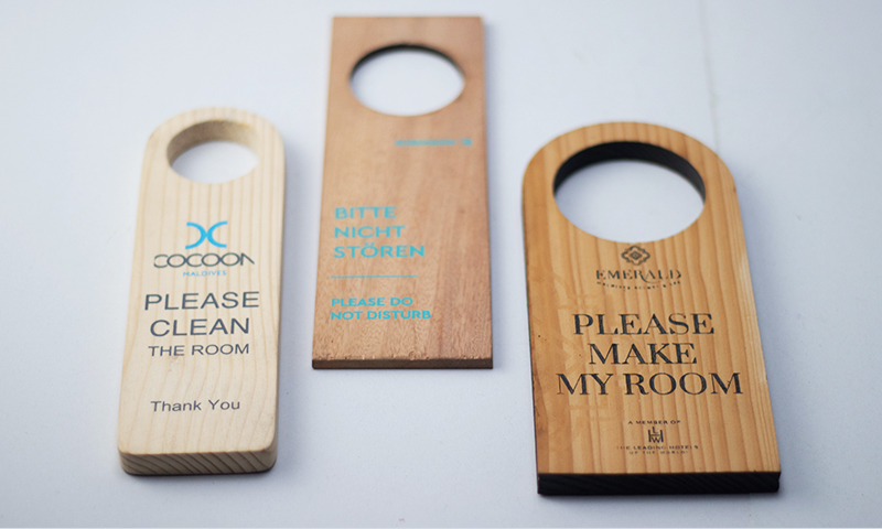 Door Tags – Custom “Do Not Disturb” and service request tags.